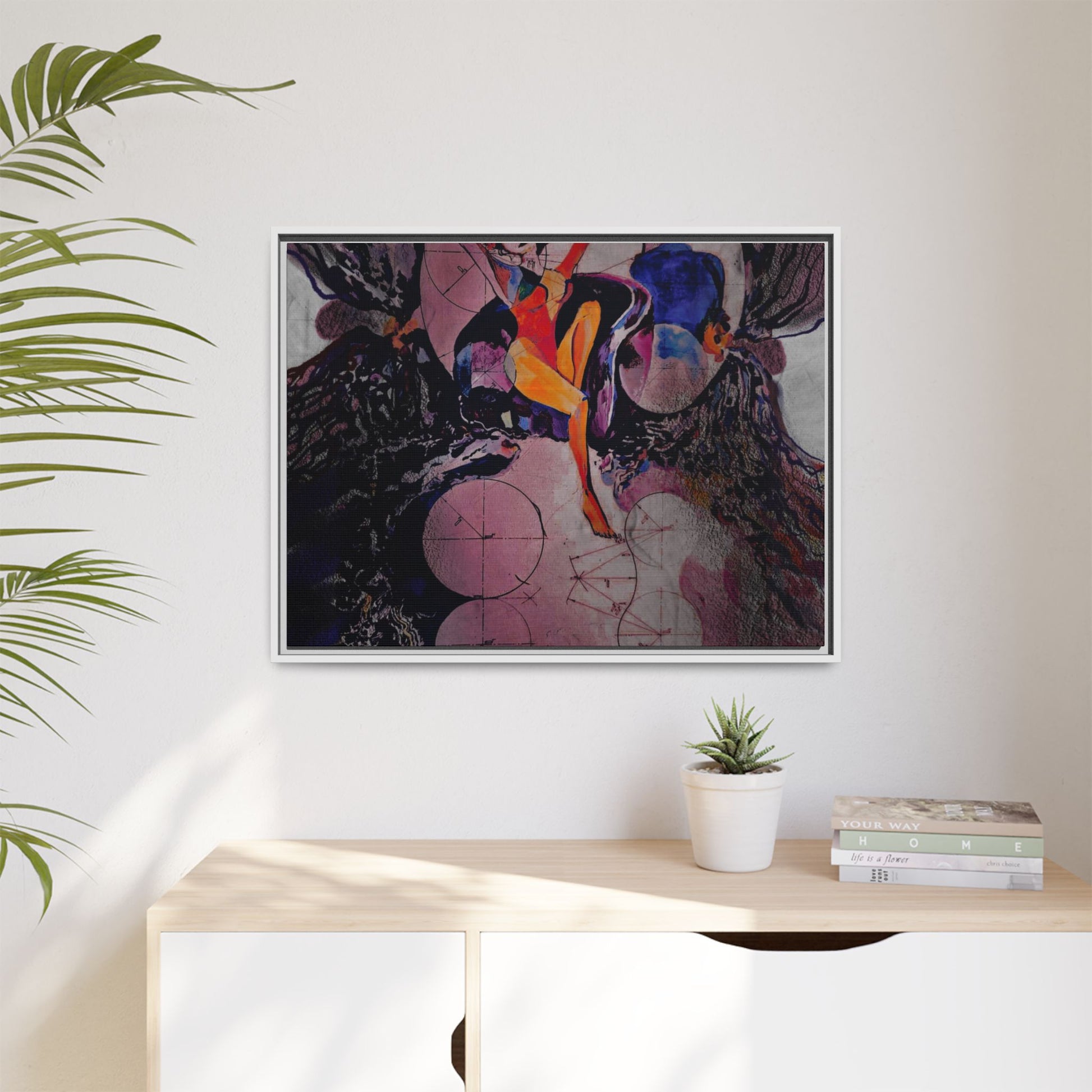 Whether you're looking to add a touch of mystery to your living room or a burst of inspiration to your office, this design speaks to the soul. The rich purples, fiery oranges, and delicate line work create a visual journey that changes every time you look at it.